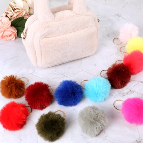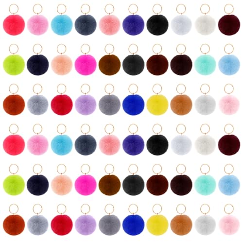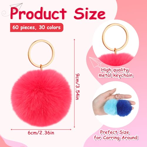 Zyghjort - 60 قطعة من سلاسل مفاتيح بوم بوم ملونة من الفرو الصناعي مع خطافات سلسلة مفاتيح، سلسلة مفاتيح منفوشة، سلسلة مفاتيح من الفرو الصناعي للنساء (30 لونًا)