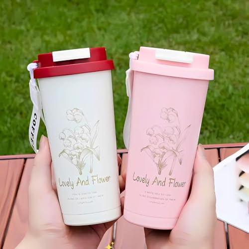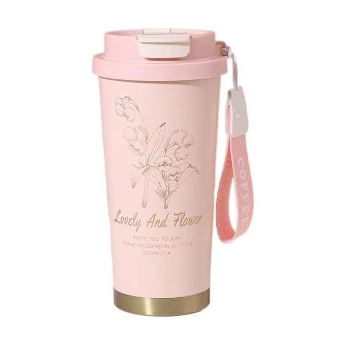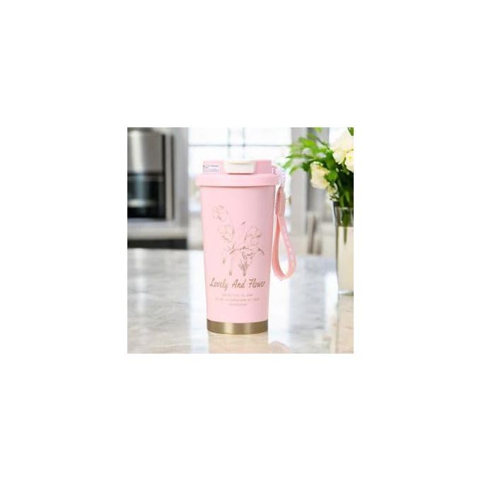 Generic - 600 ml Dual-Lid Insulated Travel Mug Without Handle – Hot & Cold Drinks | Coffee Cup with Straw & Sip Openings – Leak-Proof, Reusable, BPA-Free | Office, Gym & Outdoor User (Printed Pink + Tag)