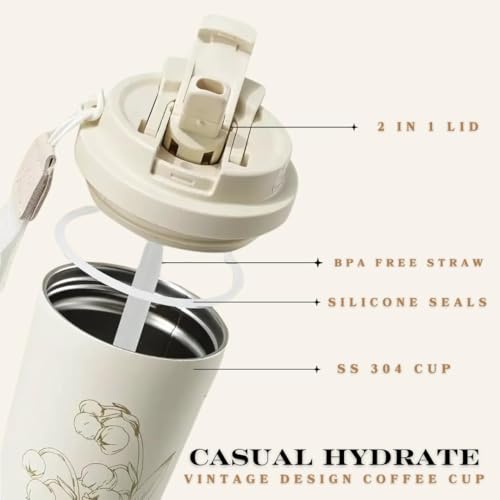 - ☕ 2-in-1 Lid Design: Features dual openings – a flip-top sip lid for hot beverages like coffee and tea, and a built-in straw lid for cold drinks and juices.