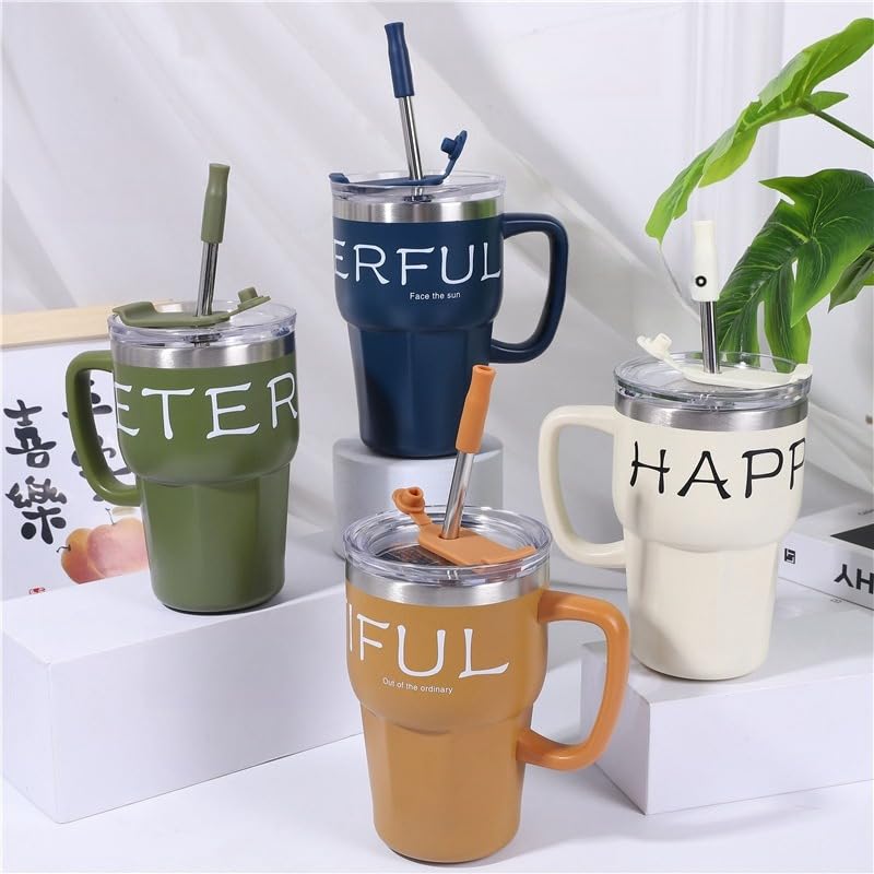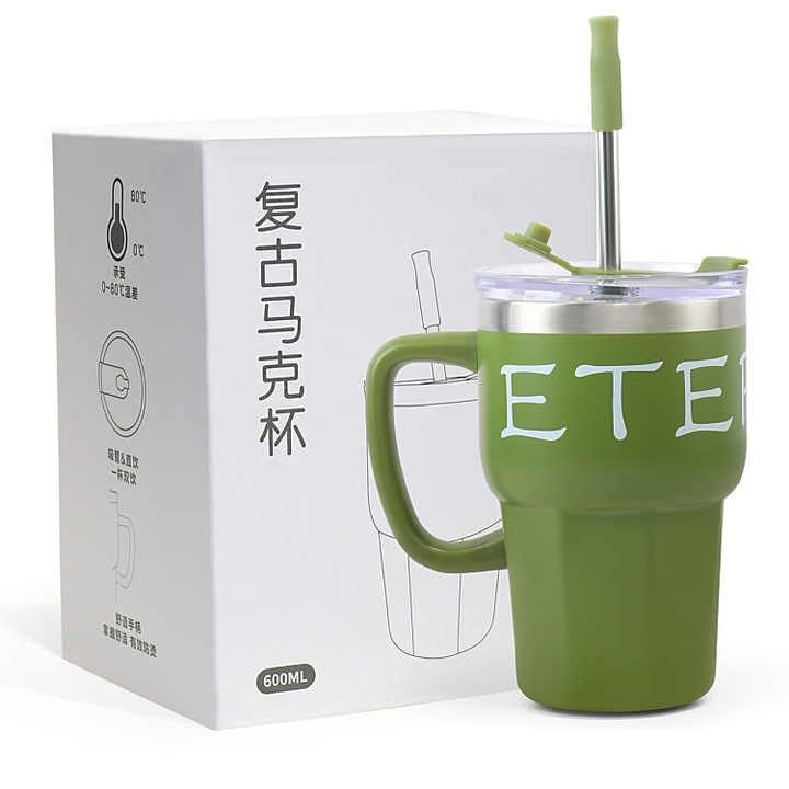 - مج للقهوة معزول سعة 600 ملليلتر مع مقبض، مج للسفر من الفولاذ المقاوم للصدأ مع غطاء وشفاطة، كوب للقهوة المثلجة مزدوج الجدار مقاوم للتسرب