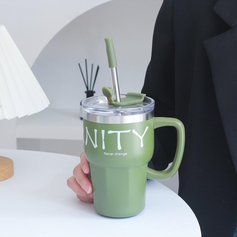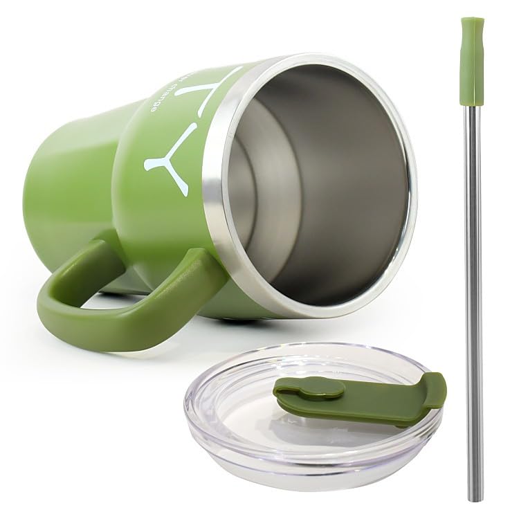 Happy Home - مج للقهوة معزول سعة 600 ملليلتر مع مقبض، مج للسفر من الفولاذ المقاوم للصدأ مع غطاء وشفاطة، كوب للقهوة المثلجة مزدوج الجدار مقاوم للتسرب (أخضر غامق)