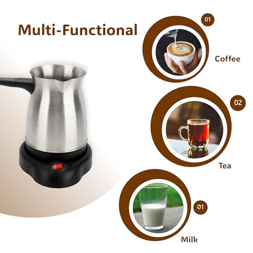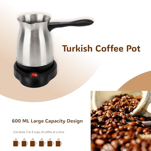 Gugxiom - ماكينة تحضير القهوة التركية سعة 600 مل، صانعة قهوة تركية من الفولاذ المقاوم للصدأ، غلاية تحضير الشاي مع وظيفة التسخين للاستخدام المنزلي وأثناء السفر