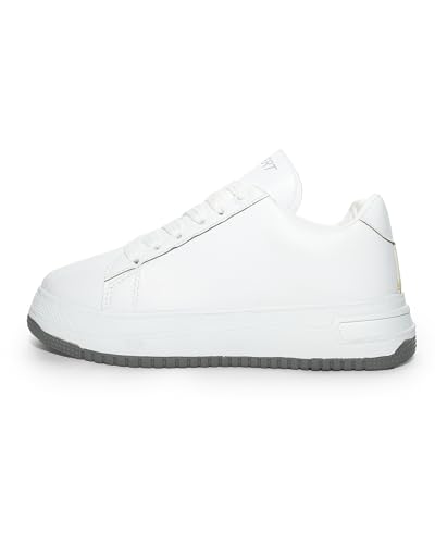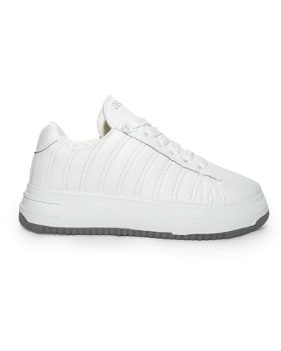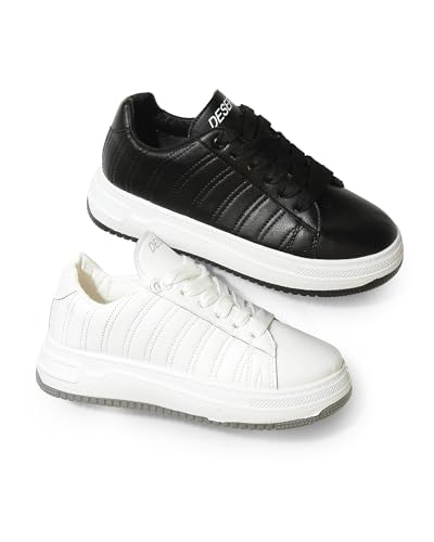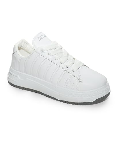 Desert - حذاء رياضي 6043/1 مسطح برباط وتطريز جانبي بسيط - لون أبيض