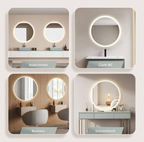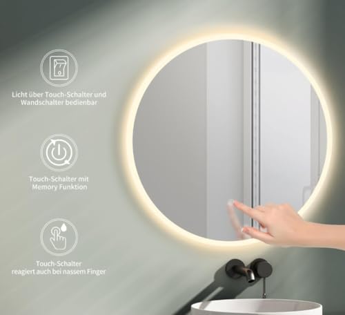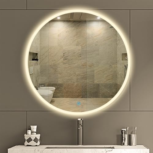 Generic - مرآة حمام دائرية LED مقاس 60 سم-بتصميم حديث-مرآة حائط للحمام بإضاءة LED ومفتاح لمس-إضاءة قابلة للتعتيم +إضاءة LED وارم