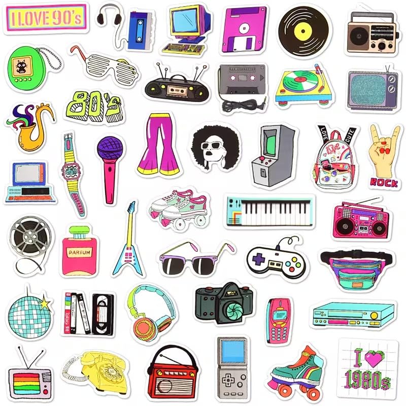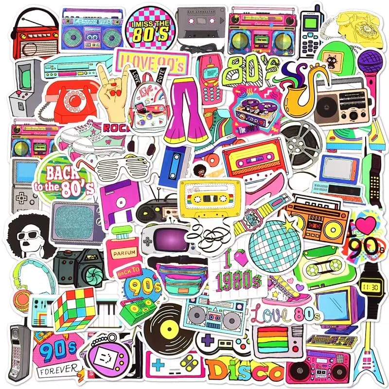 - 70pcs - Classic 80s 90s 2000s Nostalgia Stickers Waterproof Decals - Laptop Skateboard Motor Bike Car Fridge Guitar - 70pcs - 70S-80S-2000S