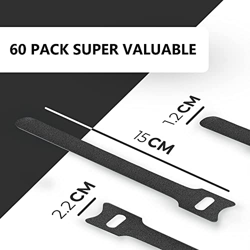 SRTXJUZD - أربطة كابلات التثبيت بريميوم القابلة لإعادة الاستخدام وللتعديل بطول 15 سم، أربطة إدارة كابلات من المايكروفايبر، منظم أسلاك بتقنية الفليكرو قابلة لإعادة الاستخدام، أسود