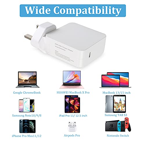 - محول شاحن ماك بوك برو USB-C متوافق مع ماك بوك برو 16 انش (2019)، 15 انش (2016/2017/2018/2019)، 13 انش (2016/2017/2018/2019)، 12 انش 2015/2016/2016/2015 017(A1 (A1707,A1706, A1708, A1534), ماك بوك اير 13 انش (2018-2020) ماك بوك اير 12 انش 2015-2017(A1707, A1706, A1708, A1534); ايباد برو 11 انش/12. 8 سم 20 18/2020؛ محول الطاقة USB-C هذا متوافق مع جميع الأجهزة التي تدعم USB-C. يمكنك استخدام هذا المحول بدلاً من المحول لموديلات ماك بوك اير/ماك بوك برو المختلفة ذات القوة الكهربائية المنخفضة.