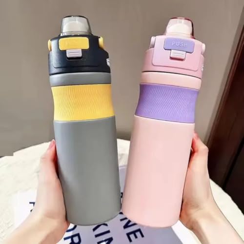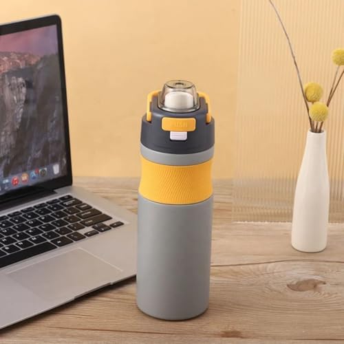 Generic - 620ml Vacuum Insulated Stainless Steel Thermal Bottle – Leakproof, BPA-Free Hot & Cold Sports Water Bottle for Coffee, Tea & Travel (Grey and Yellow)