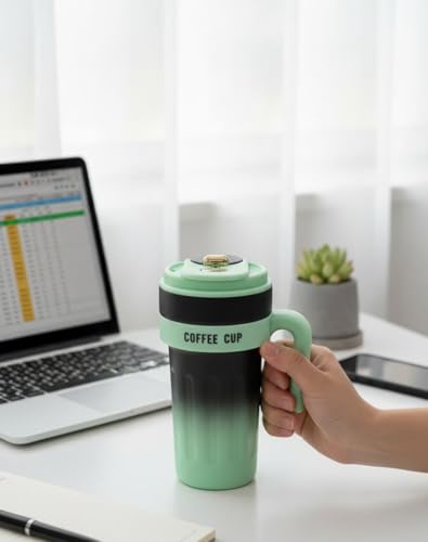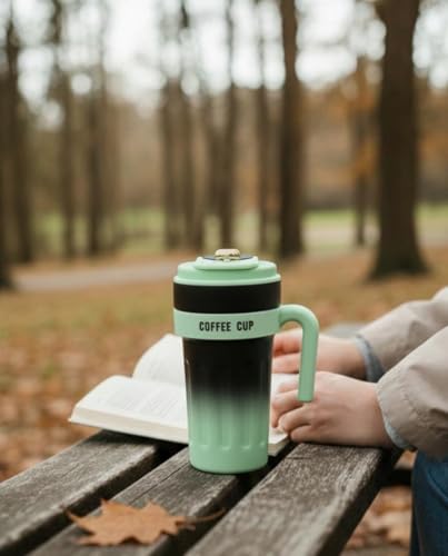 Spaceshoop - 650ml Extra-Large Gradient Thermal Coffee Mug – Insulated Travel Tumbler with Comfort Handle (Green with Black, Large)