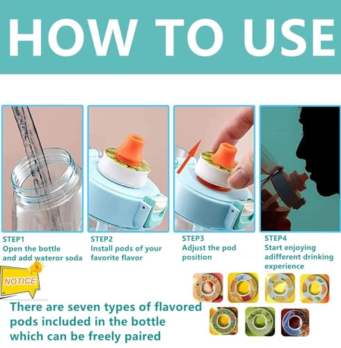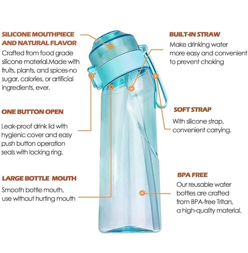 - 【سهلة الشرب】: نقدم 7 حلقات معطرة، مع حلقة واحدة للرائحة يمكنك تجربة رائحة 1.4 جالون من الماء، لذلك يمكنك الحصول على 9.8 جالون من تجربة العطور، زجاجة مياه رياضية مع كبسولات فاكهة، مما يتيح لك شرب الماء في نفس الوقت، والاستمتاع بمجموعة متنوعة من مشروبات الفاكهة، سهلة الحمل، زجاجات المياه مع شفاطة مع أوقات للشرب تلبي متطلبات المياه اليومية لجسم الإنسان، مما يضمن حياتك الصحية