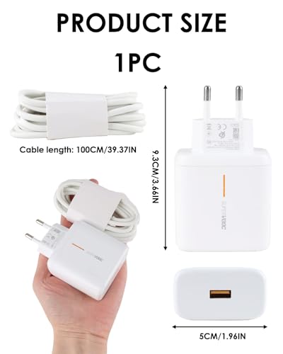 teasteam - 65W Fast Charger Compatible with Supervooc for Oppo with 2m USB-C Cable Mains Charger for Oppo Find X5/X6 Reno5 Pro+/Reno5 K/7/8/9 Pro+