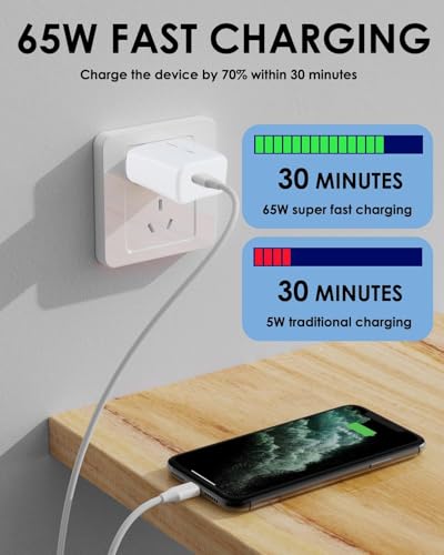 - ADVANCED SAFETY TECHNOLOGY: Featuring an intelligent thermal management chip that measures temperature 25 times per second, this 65w usb c charger provides overheating, over-voltage and short circuit protection for reliable use.