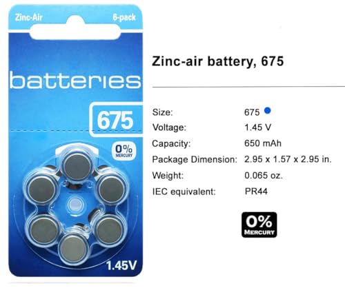 Generic - 675 Zinc Air PR44 Battery Module Set for Hearing Aid and Hearing Amplifier, 6 Pieces in 1 Pack, 1.45V