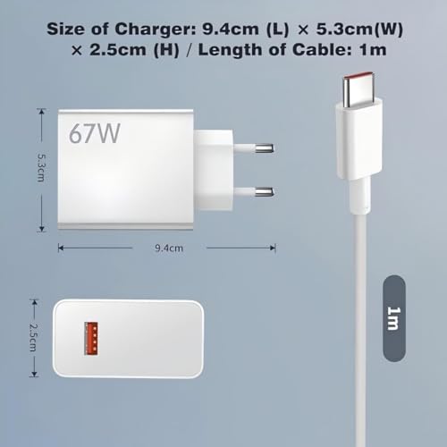 Generic - 67W Fast Charger with 1M USB C Cable Compatible with Mi Turbo, with USB-C Cable for 12S Ultra, 12 Lite, 12X, Redmi Note 11, 11S, 10S, 10 Pro, Mi 11 Ultra, 11i, 10T Lite, Poco M4, X4, X3