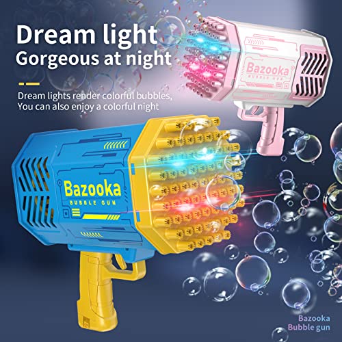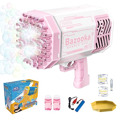 Kamsyluci - مسدس فقاعات بازوكا بـ69 فتحة، مسدس فقاعات مع أضواء، مسدس فقاعات كبير للأطفال والكبار، مسدس فقاعات لحفلات الزفاف وأعياد الميلاد (لون وردي)