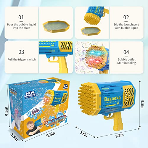 - الوظيفة: يمكن استخدام مسدس الفقاعات ذو 69 فتحة هذا مع أضواء خلال النهار أو الليل.