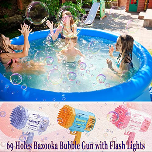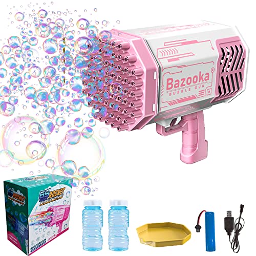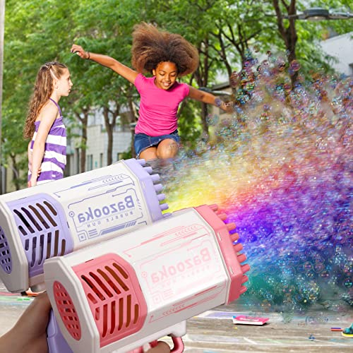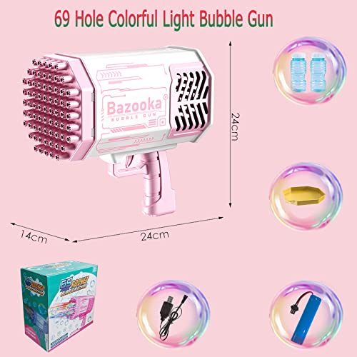 TYZEST - 69 Holes Bazooka Bubble Gun with Flash Lights-Rocket Boom Bubble Blower-Giant Bubble Machine Gun,Toddler Outdoor Toys for Kids ,Best Gifts for 6 7 8 9 10 11 13 12 14 Year Old Boys and Girls(Pink)