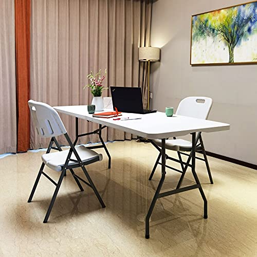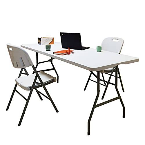 HA Furniture - 6ft Folding Table with 2 Chairs for Garden Party Dining BBQ Fair Stall Home Office