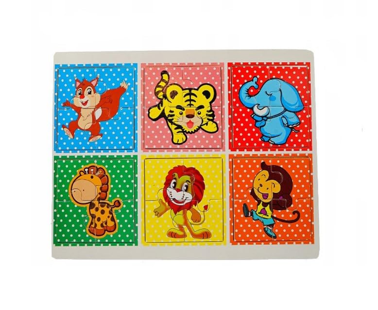Generic - 6in1 Rectangle Puzzle Board With Animals Design To Develop Kids Skills Set Of 24 Pieces, 30x25 CM