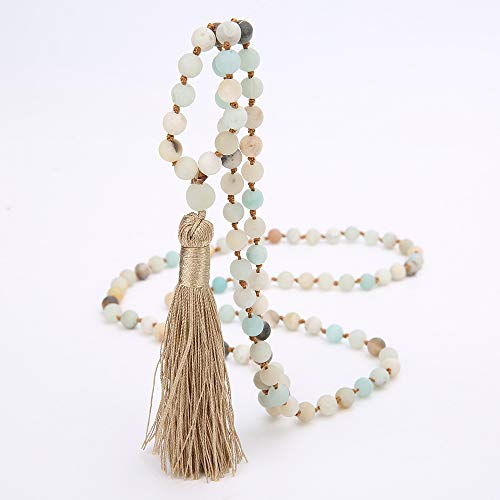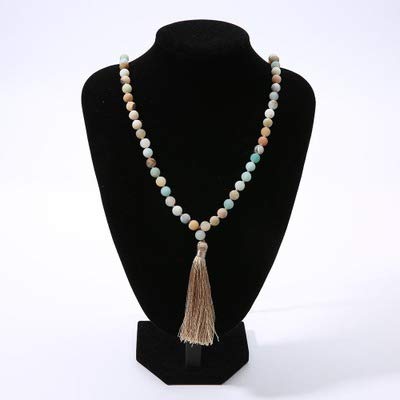 Caiyao - 6mm 8mm Chakra Long Mala Rosary Prayer Beads Tassel Necklace Natural Stone Meditation Statement Necklace Japa Yoga Buddhist Rosary Prayer Charm Beaded Strand Necklace for Women Men, stone, stone,