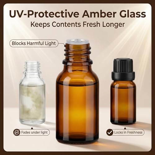 - تحمي زجاجة الزيت الزيوت العطرية من الأشعة فوق البنفسجية الضارة، مما يمنع تبخرها السريع ويحافظ عليها لفترة أطول.
