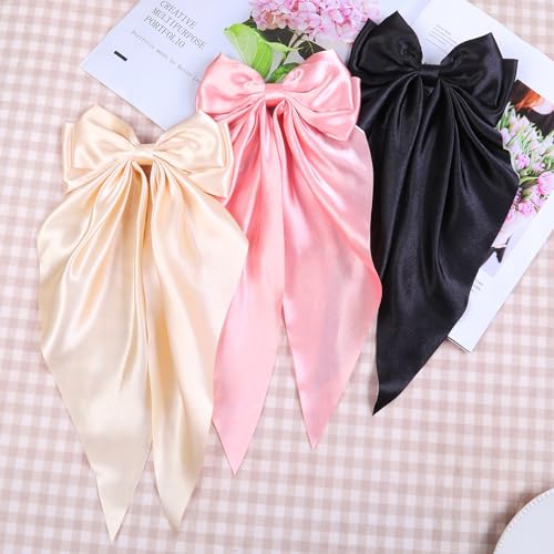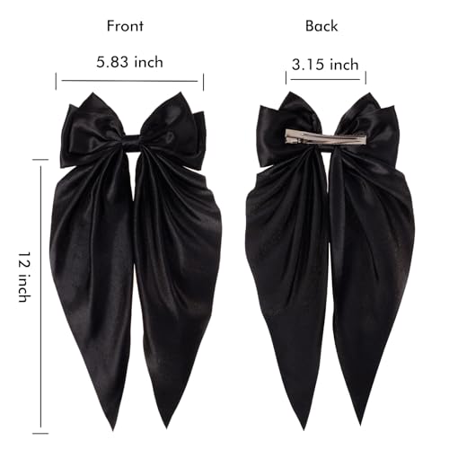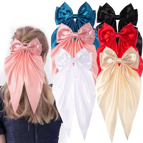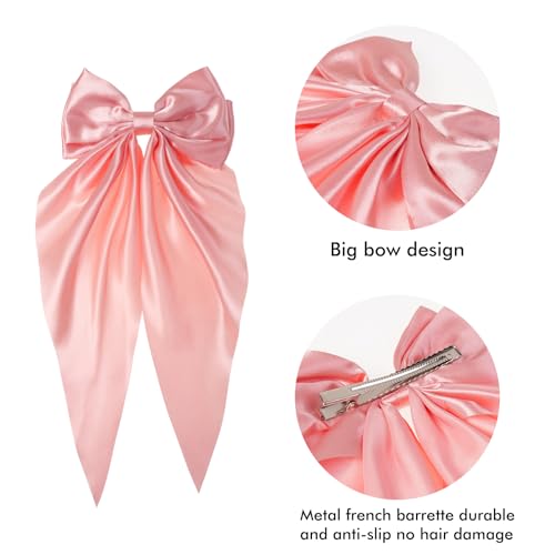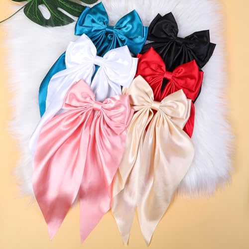 ONEYE - 6PCS Large Bow Hair Clips for Women Silky Satin Hair Bows Big Hair Ribbons Clips with Long Tail Hair Accessories for Women Girls
