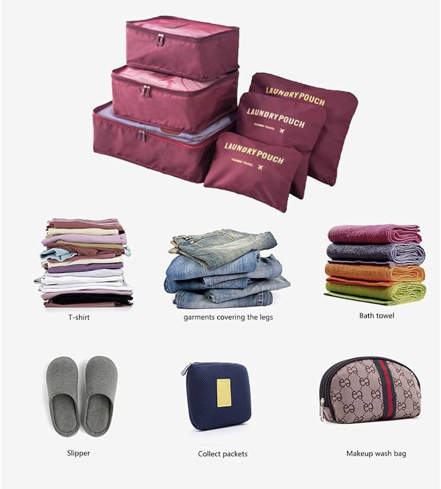 Generic - 6pcs Packing Luggage Bags Organizers, Travel Luggage Packing Organizers Set with Toiletry dark red 6pcs Luggage Organizer Travel Luggage Packing Organizers Set with Toiletry Bag Maroon