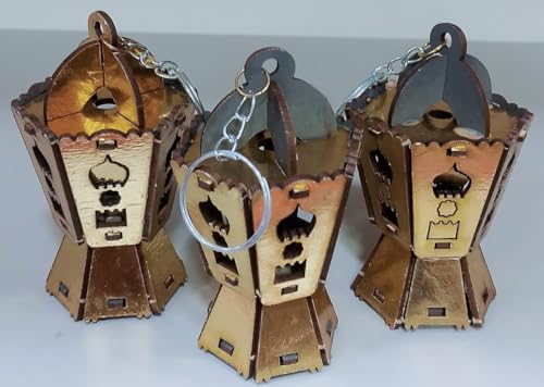 Generic - طقم سلسلة مفاتيح فانوس رمضان خشبي، مقاس 7 سم عرض من 3 قطع خمات عاليه الجوده ، تصميم نجمه وهلال ، هدية زخرفية للعطلات، حلقة مفاتيح معدنية متضمنة بلون دهبى