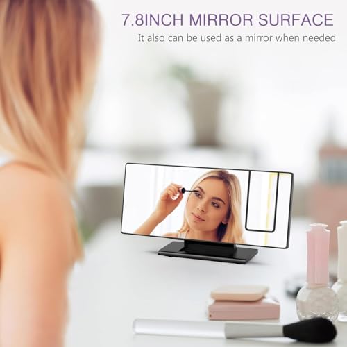 - FULL REFLECTIVE WITH LED LIGHTS: The upgraded reflective alarm clock features a larger screen (7.8ft) that operates as a mirror, easy-to-read oversized display so you can read the time easily from a distance