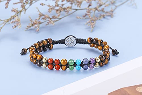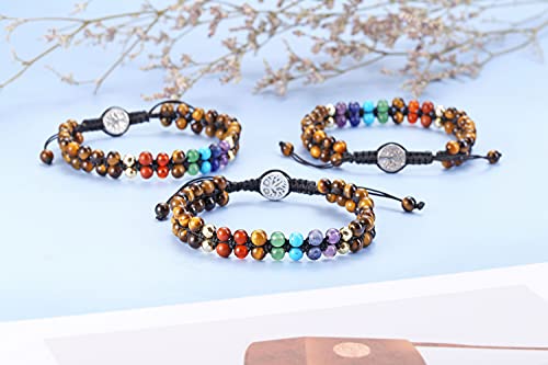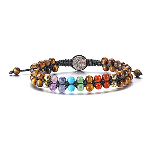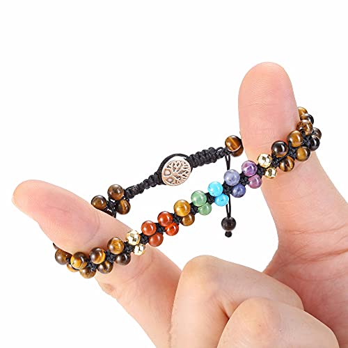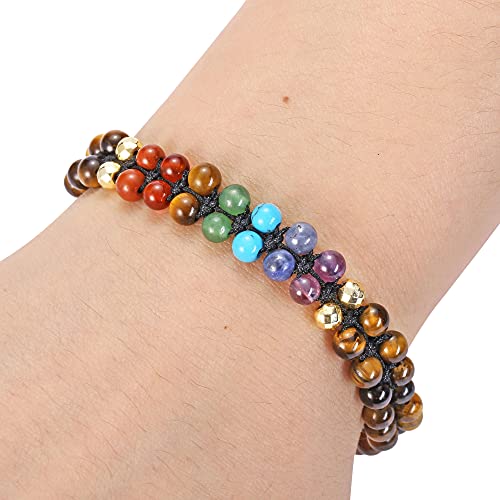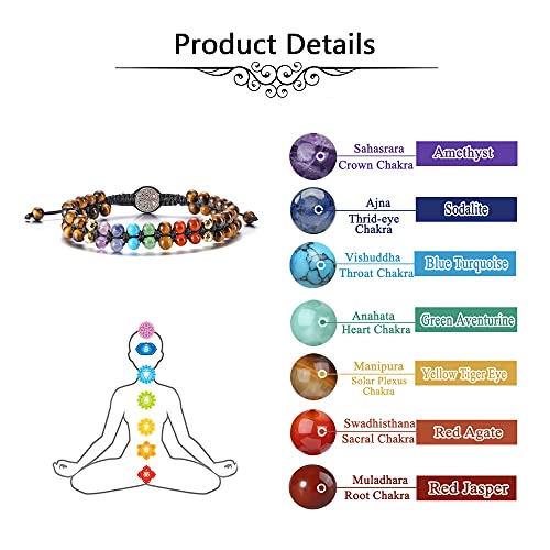 generic - 7 Chakra Bracelet Reiki Healing Crystals Stone Bracelet Double Layer Natural Gemstone Beads Bracelets for Women Men Yoga Meditaion Braided Rope Adjustable, Stone, not known,