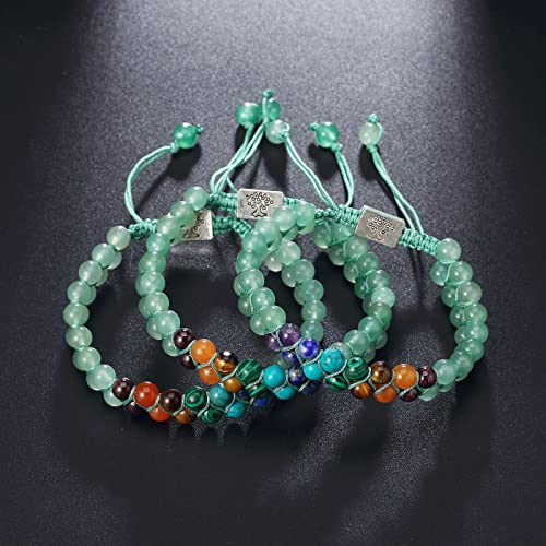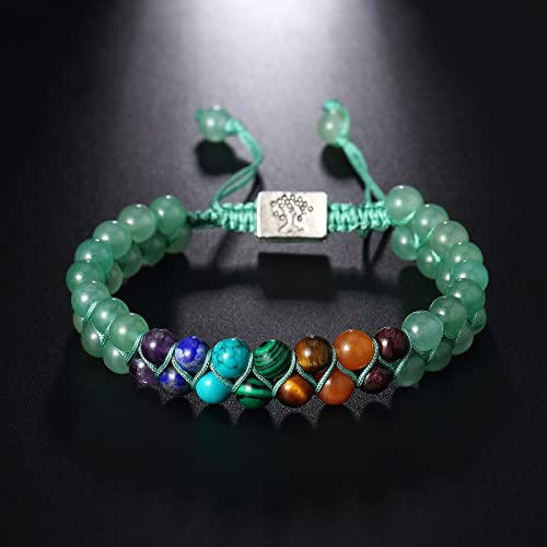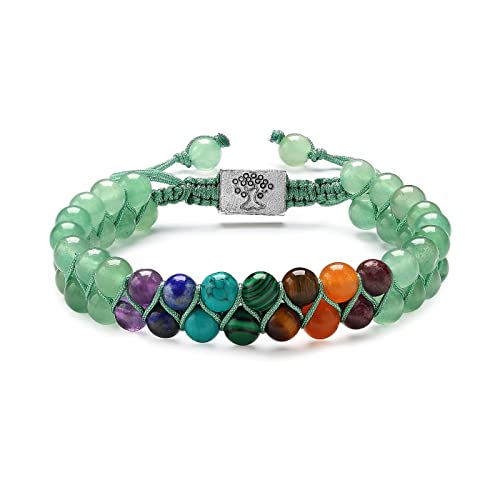 generic - سوار خرز كريستالي علاجي مكون من 7 احجار شاكرا مزدوجة الطبقات لليوجا والتامل والاحجار الكريمة الطبيعية، اساور شاكرا مضفرة للافينتورين الاخضر والريكي للنساء والرجال