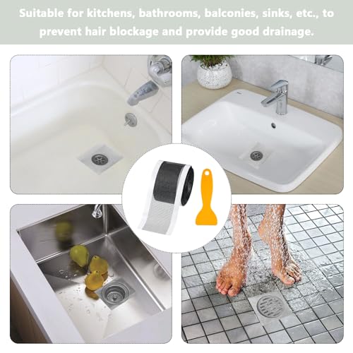 BYYT - 7 cm x 10 m Hair Strainer Shower, Disposable Drainage Hair Catcher, Sticker for Rectangular Strainer, Drain Strainer, Shower Drain Mesh Sticker, Anti Clogging Filter for Shower, Bathtub, Sticker for