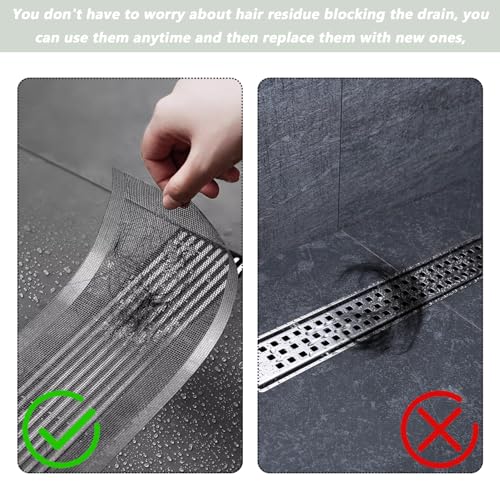 - Hair strainer bathtub: simply measure the length of your sink drain and then cut these polyester bathroom floor drain stickers into the desired size, clean and dry the drain, peel off the adhesive, stick it on and press it for a better effect, it is ready after use, simply peel and throw away.