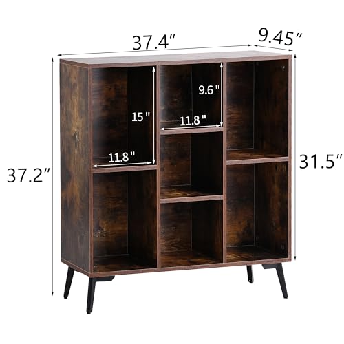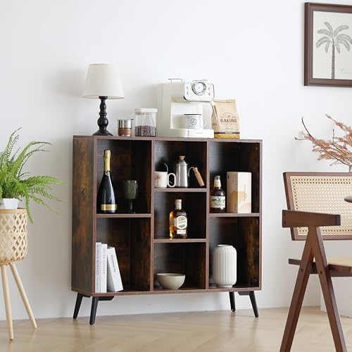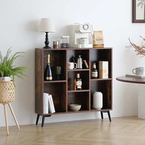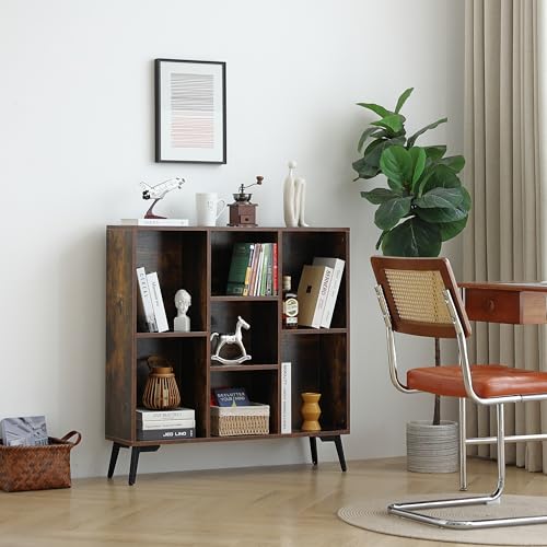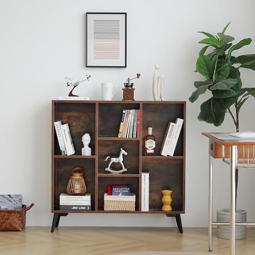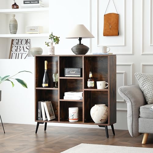 Sopsele - خزانة كتب من 7 مكعبات، رف كتب خشبي، منظم تخزين عصري مفتوح، رف خزانة عرض، ارفف كتب قائمة بذاتها للمكتب وغرفة النوم وغرفة المعيشة، بني (بني)
