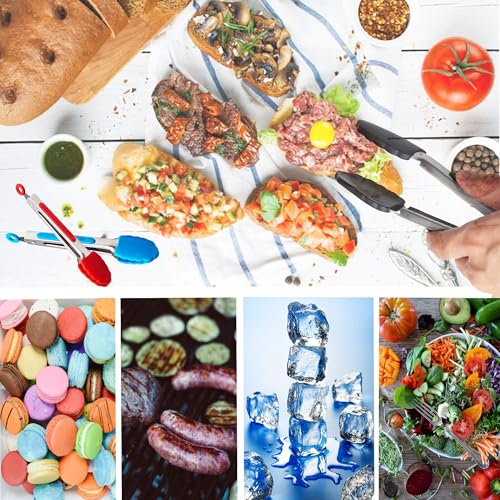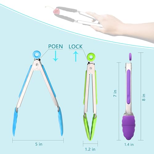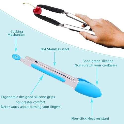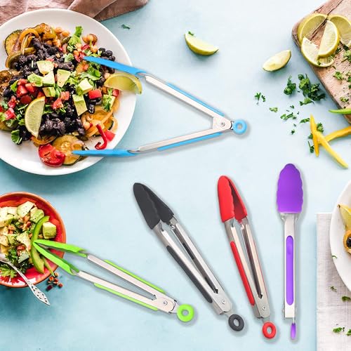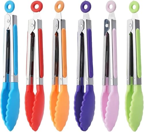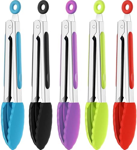 Spaceshoop - مساكة مطبخ صغيرة من السيليكون مقاس مع أطراف سيليكون، مساكة تقديم صغيرة من الفولاذ المقاوم للصدأ للسلطة والشوي والقلي والطبخ، 18 سم (متعددة الألوان، 5 قطع)