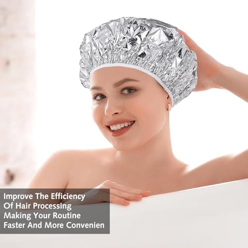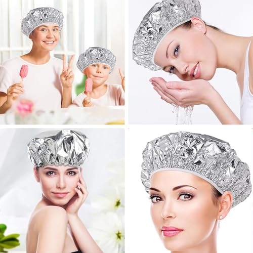 - 【Premium Material】Crafted from high-quality aluminum foil, these caps effectively retain heat, enhancing the dyeing, bleaching, or deep conditioning process. They help heat penetrate deeper into the hair fibers, improving treatment results. Ideal for retaining heat for certain hairstyles, they can also be used as shower caps to keep hair dry during baths.