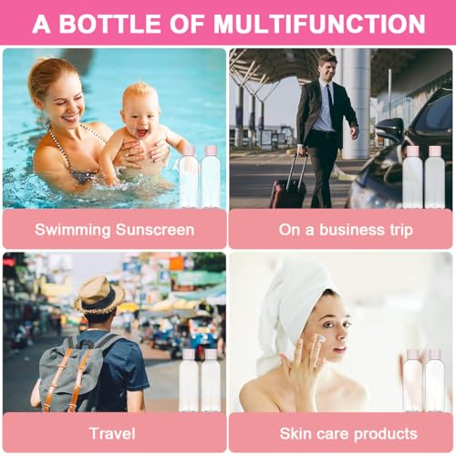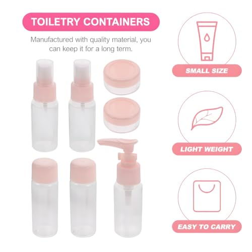 CATOR - 7 Piece Bottle, Travel Bottles, 60ML Plastic Travel Bottles, Portable Travel Containers, Spray Bottles, Transparent Travel Container Set (Pink)