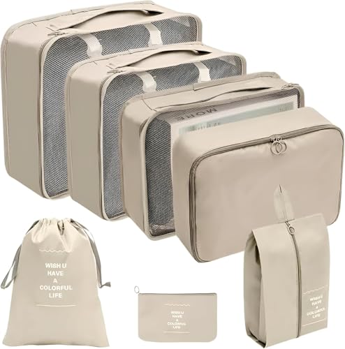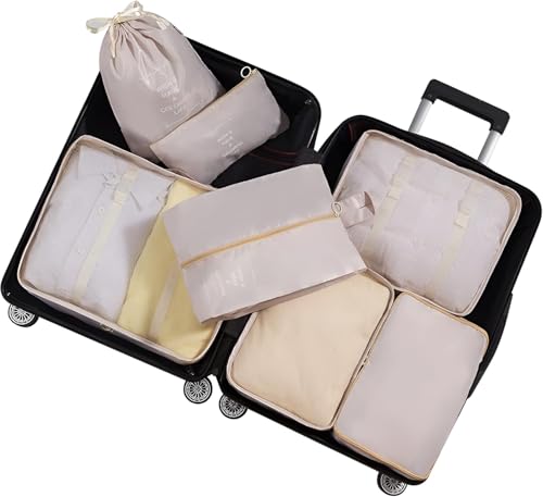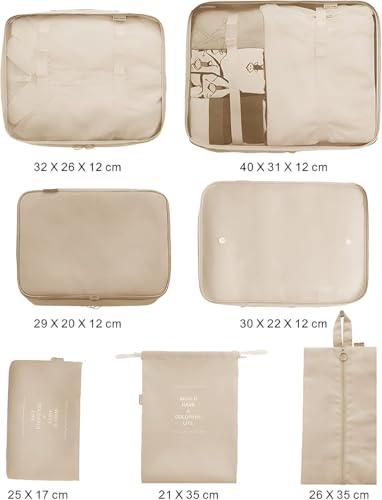 Generic - 7 Pieces Travel Packing Cubes Set Luggage Organizers for Travel Accessories Suitcase Organizer for Luggage, Toiletries, Shoes, Clothes, Cosmetics (Travel Luggage Organizer) (Beige)