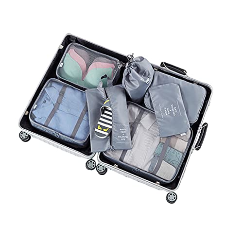 HADELBEK - 7 Set Packing Cubes with Shoe Bag - Compression Travel Luggage Organizer (Gray)