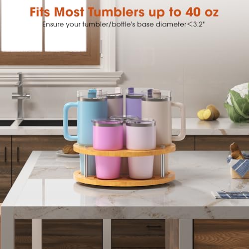 - 360° Rotating Design: Effortlessly access your bottles with the rotatable Stanley cup holder feature. Whether on a countertop or in a cupboard, this gold tumbler organizer ensures smooth, easy retrieval from any angle. Perfect Stanley Cup accessories.