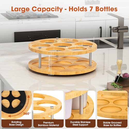 - Durable & Ec0-FrlendIy Bamb00 : Crafted from sustalnabIe Bamb00 , this water bottle organizer is both sturdy and stable. Its two-layer construction ensures bottles stay securely in place, even when full or unevenly placed. Also, its smooth Bamb00 surface won't scratch your bottles.