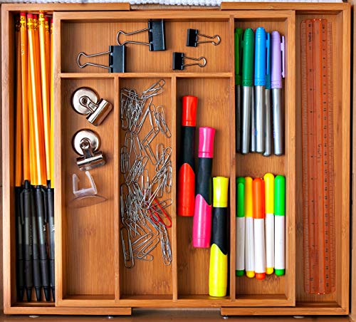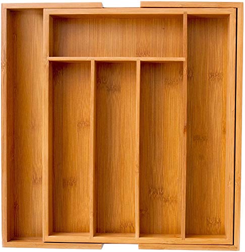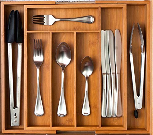 - ال اي سيجناتشر سيضفي منظم الأدراج الفضية المصنوع من الخيزران القابل للتوسيع المكون من 7 فتحات من اورجانجرز مظهرًا جيدًا وراقيًا إلى مطبخك أو أي غرفة في المنزل. - تخلص من صواني الأواني الفضية البلاستيكية الرخيصة واحصل على ترقية بأكثر من مجرد مظهر! لا يبدو هذا المنظم المتين فاخرًا فحسب، بل يناسب قطع أكثر من الصواني المصبوبة. مساحة تخزين أكبر لتجعلك أكثر تنظيمًا!