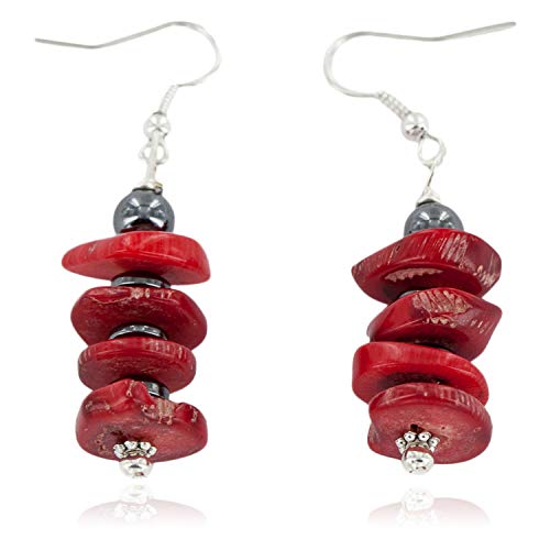 Native-Bay - $70Tag Certified Silver Hooks Natural Coral Native American Dangle Earrings 18156 Made By Loma Siiva