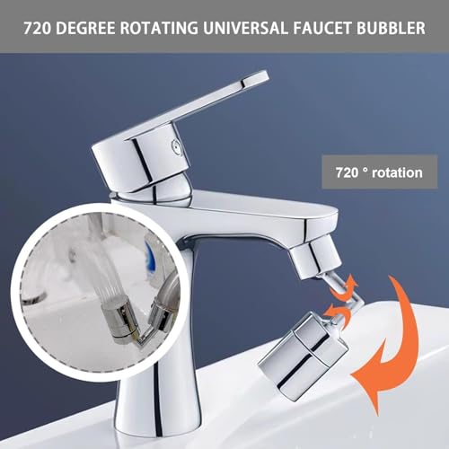 Generic - حنفية فلتر بخاخ دوار 720 درجة، مرفق حنفية لمخرج المياه بسن انثى 22 ملم/ذكر 24 ملم . 720 درجة . معدن