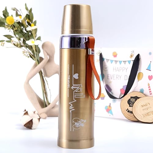 Generic - قارورة حرارية متينة من الفولاذ المقاوم للصدأ بسعة 750 مل: عزل مفرغ مزدوج الجدار يحافظ على المشروبات باردة أو ساخنة لساعات. مثالية للاستخدام اليومي في المنزل والمدرسة والمكتب والسفر والأنشطة. (ذهبى)