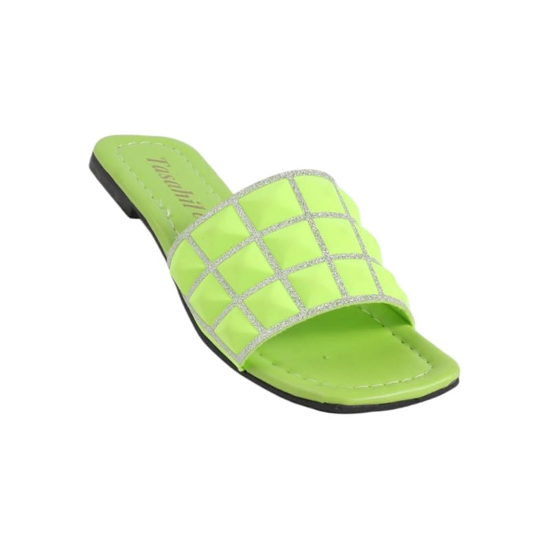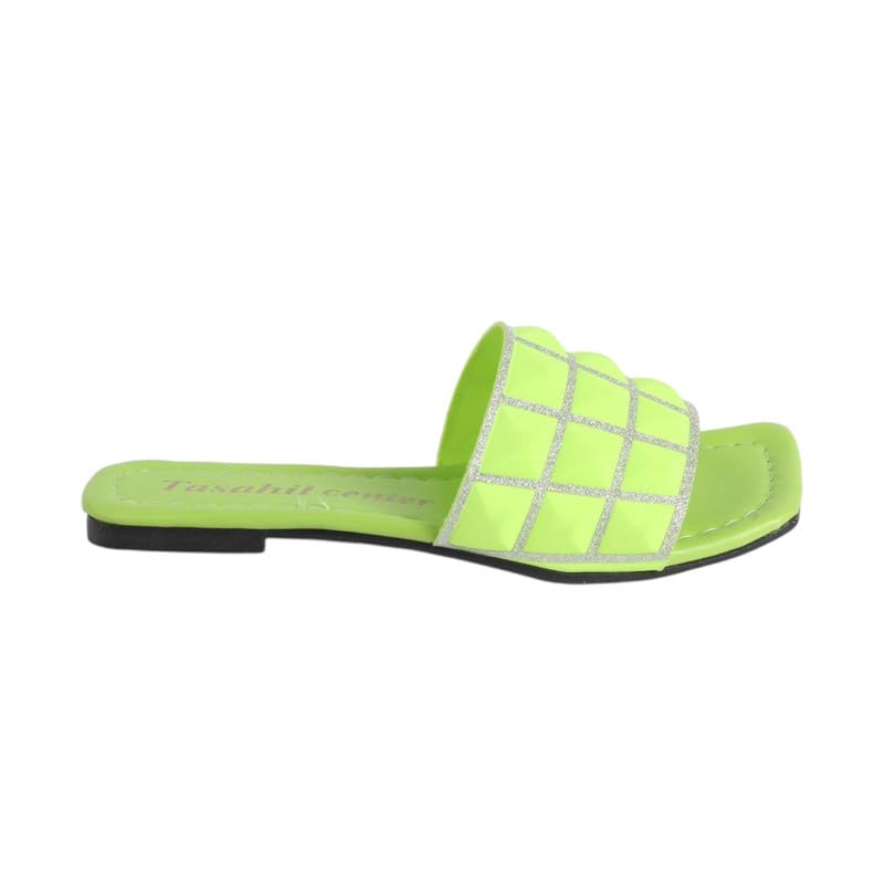 Generic - سليبر حريمى فلات جلد فى قماش 781 ليمونى 38