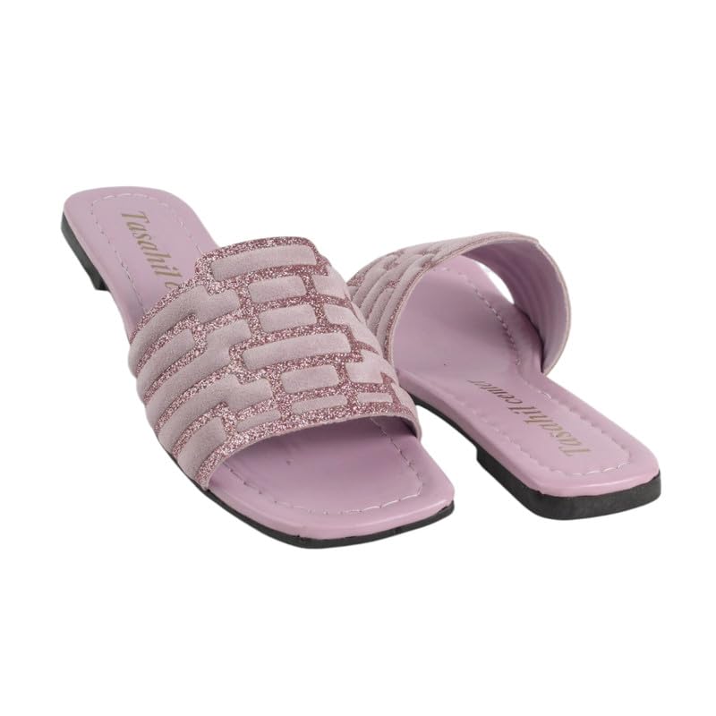 Generic - سليبر حريمى فلات جلد فى قماش 782 موف 41