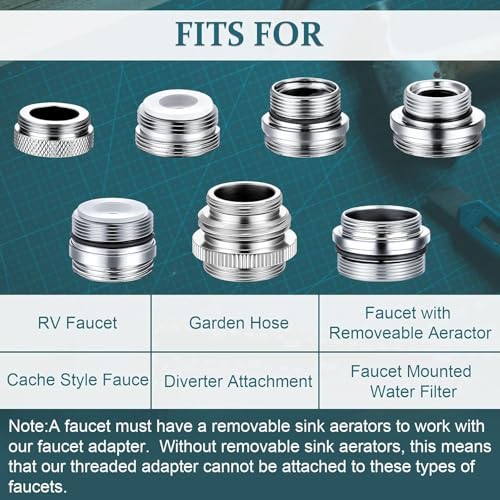 - 5. Hassle-Free Use & Clear Guidance:Arrives in a compact, protective package with 7 labeled adapters (Image 1). Uniform design with knurled edges ensures a secure grip. Reminder: only use with removable aerator faucets (Image 6’s note). Ideal for homeowners, RVers, or gardeners—no special tools, just reliable performance for watering, filtering, or camping.