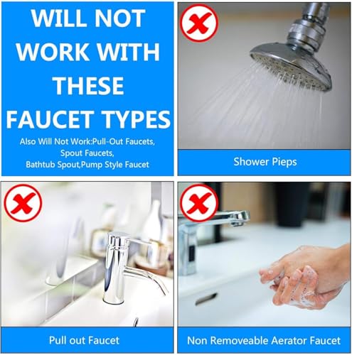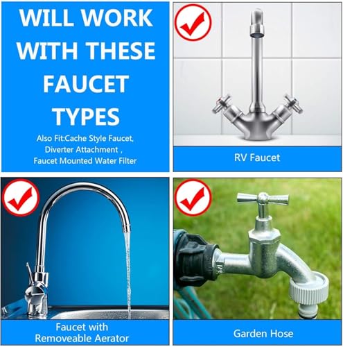 - 2. Strict Compatibility: Fits These, Not Those:✅ Works With: Sink faucets with REMOVABLE aerators (Image 2/6)—including Cache styles, RV spouts, faucet-mounted filters, and diverters.❌ Won’t Work With: Pull-out faucets (Image 3), shower heads, bathtub spouts, or non-removable aerator taps (red X’s in Image 3/6). Always check your faucet has a detachable base first—ensures a secure fit and avoids returns.