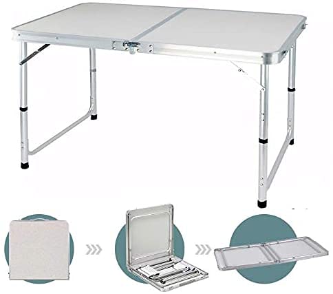 • ★【Adjustable Height】:The size of the 4ft folding table is very suitable for many occasions.The unfold size: 120 x 60 x 70/62/55cm,the folded size: 60 x 60 x 6.5cm.This folding table can be adjusted to three heights (70cm,62cm and 55cm) to meet your needs.